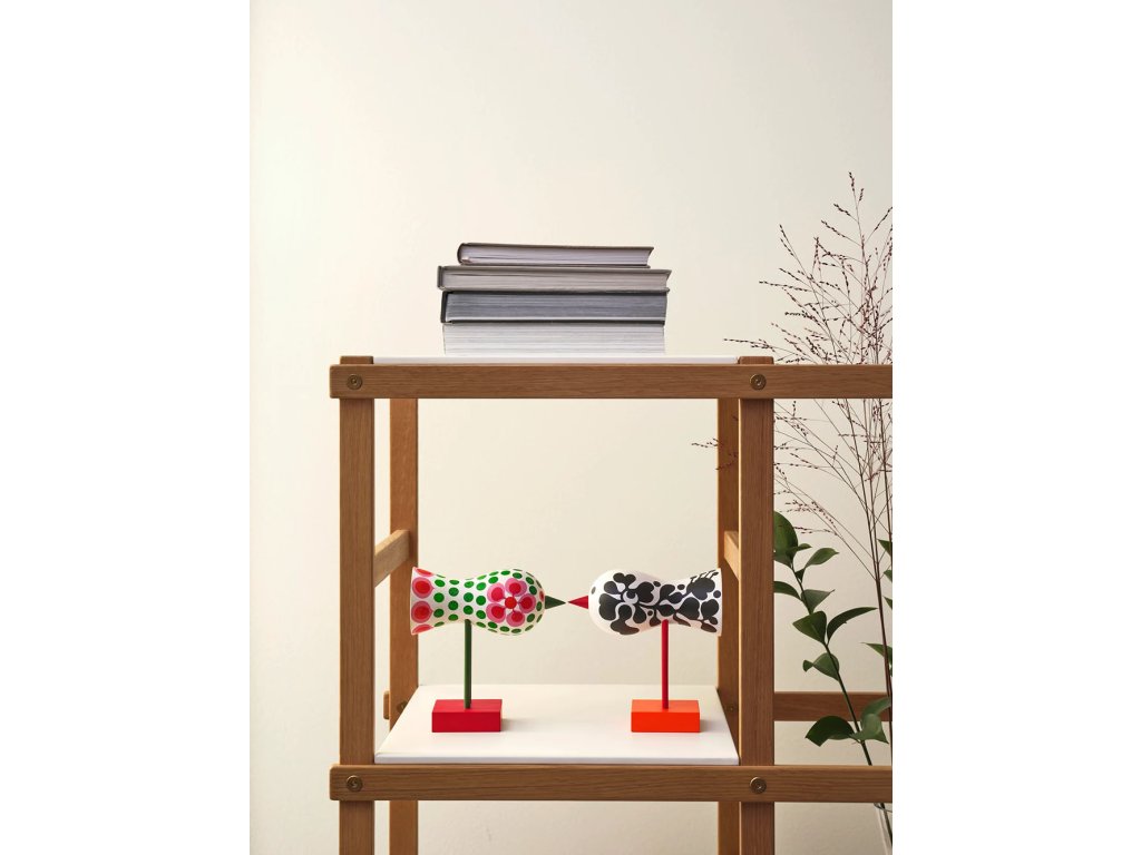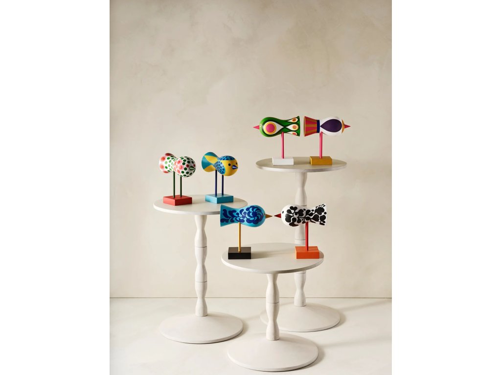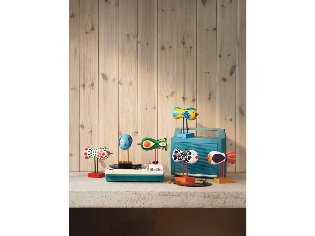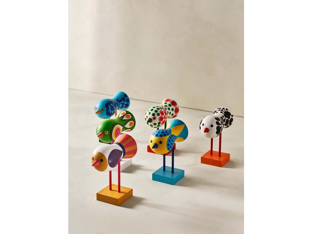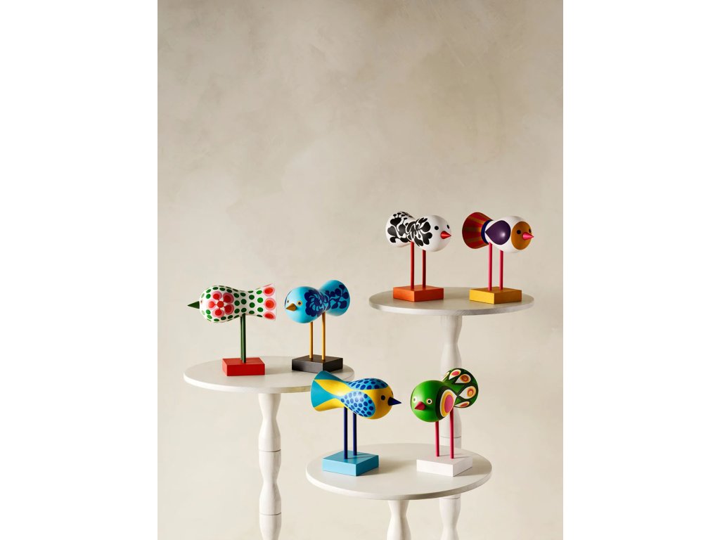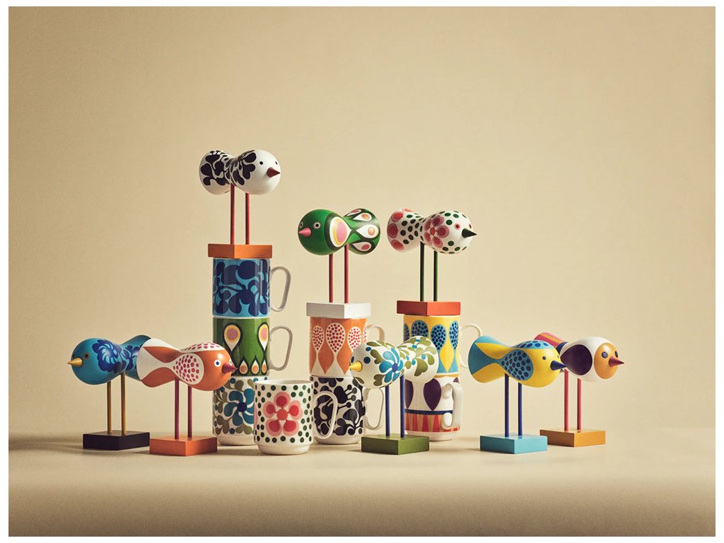 Ptáčci zůstali ukrytí celá desetiletí – nejprve na rodinné chatě v jižním Švédsku, později v ateliéru nedaleko Stockholmu. „Když jsem navštívil Lisino studio, narazil jsem na tyhle úžasné návrhy,“ říká Anders Färdig, zakladatel Design House Stockholm. „Byl jsem jimi naprosto okouzlen. Proč ještě nejsou v produkci? Mexický výraz, květinové vzory ve stylu Flower Power – ptáci Lisy Larson působí jako holubice míru. Připomínka doby, kdy mladá generace snila o lepší společnosti.“