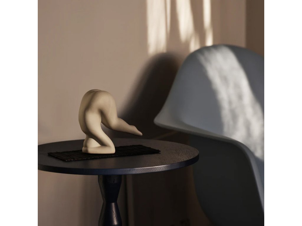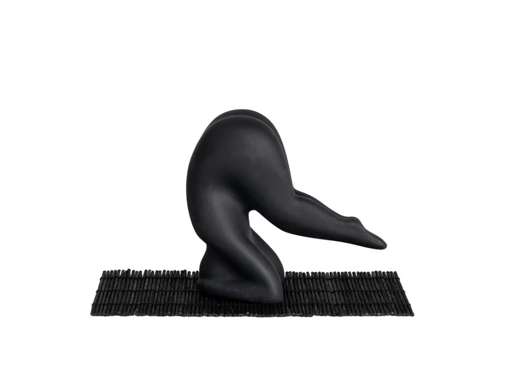 Stylizovaná těla figurín jsou jednoduchá, bez snahy o idealizaci. Jejich plná, zakulacená postava kontrastuje s napětím jógových pozic. Ukotvené na podložkách z tkaného bambusu připomínají, že stejně jako hodiny ukazují čas a křeslo poskytuje odpočinek, i tyto sochy nabízejí tiché pobídnutí: najdi v sobě rovnováhu.