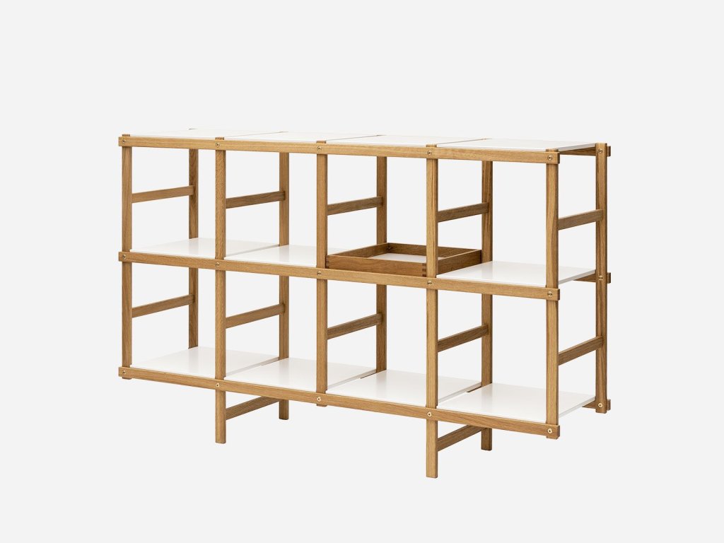 „Architektura se mění. Moderní prostory s prosklenými stěnami od podlahy ke stropu a vestavěnými skříněmi si žádají otevřené a transparentní regálové systémy, které nebrání průchodu denního světla, a přitom vytvářejí platformu pro dekoraci,“ říká designér Harald Hermanrud. „Frame se skvěle hodí ke stěně, za pohovku, jako dělicí prvek místnosti nebo jako samostatně stojící kus.“