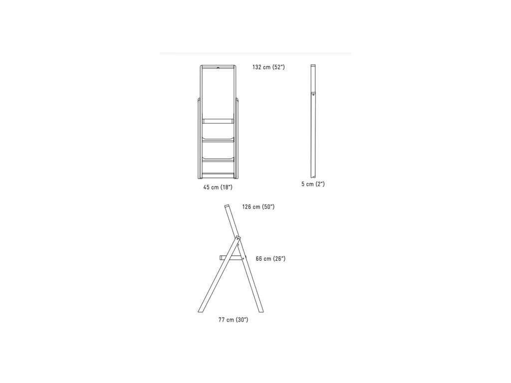 Schůdky jsou vyrobeny z bukového nebo dubového masivu a v roce 2011 byly oceněny jako nejlepší "kus" nábytku v magazínech Wallpaper a švédské Elle Deco. Hák k připevnění na zeď je součást balení!