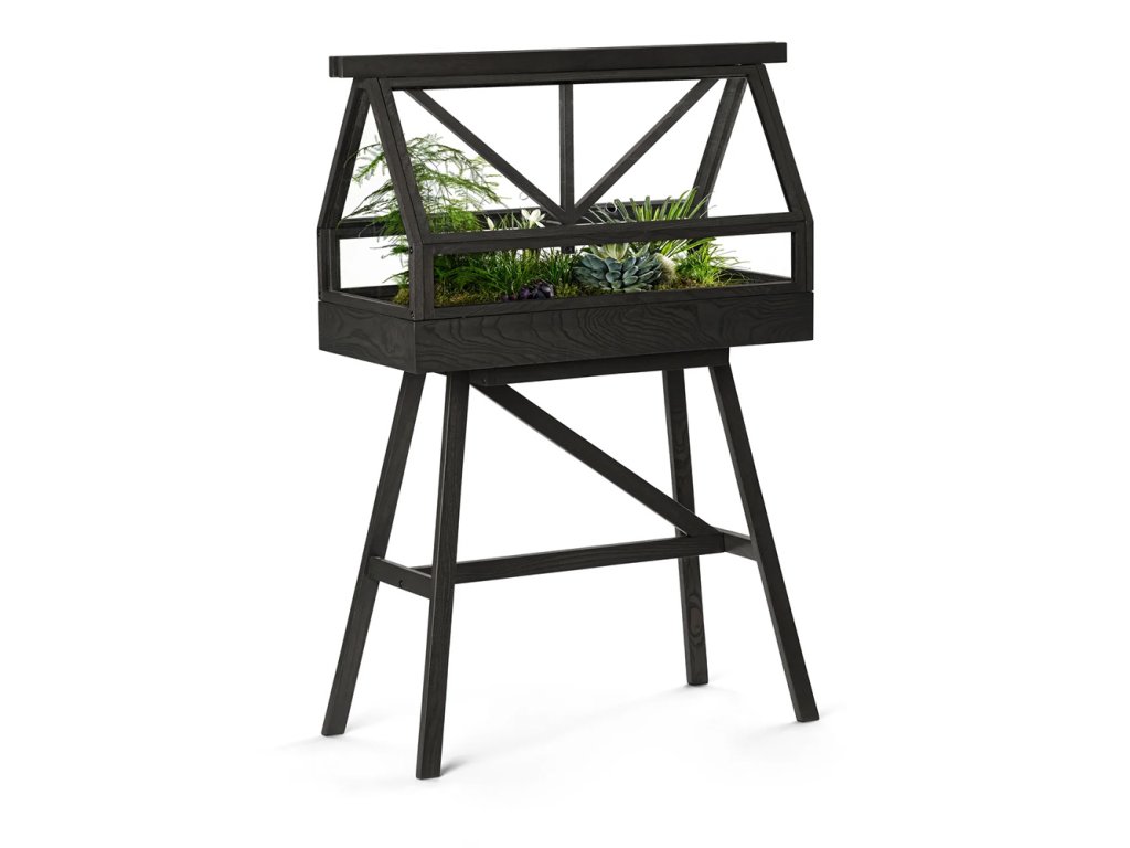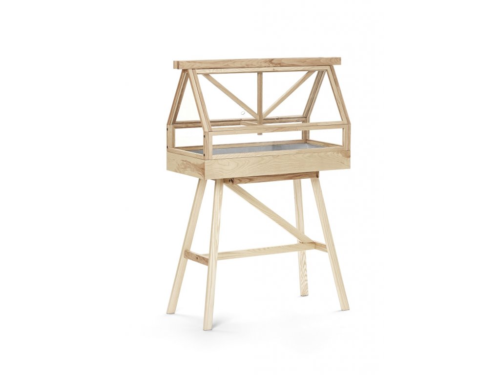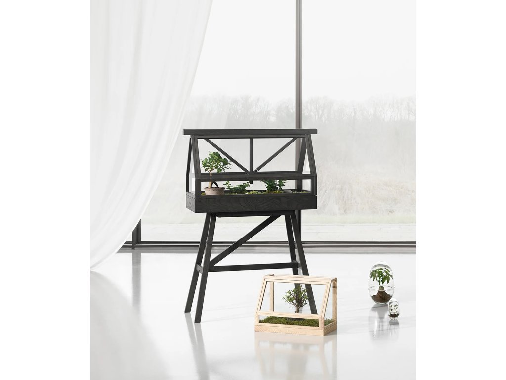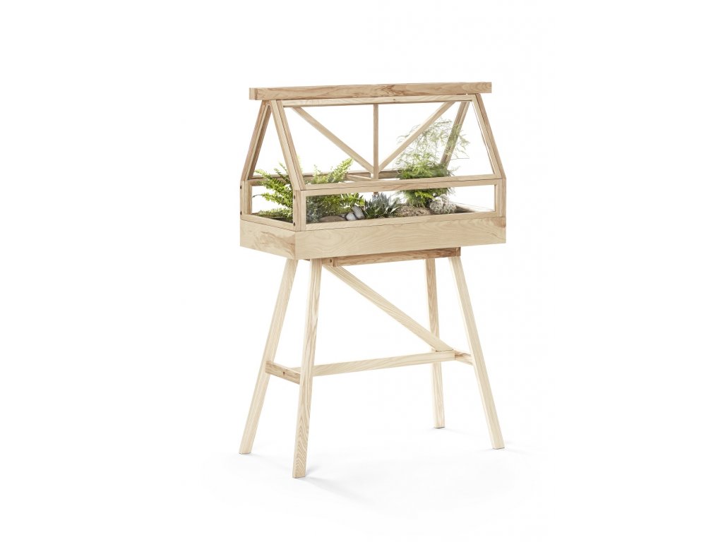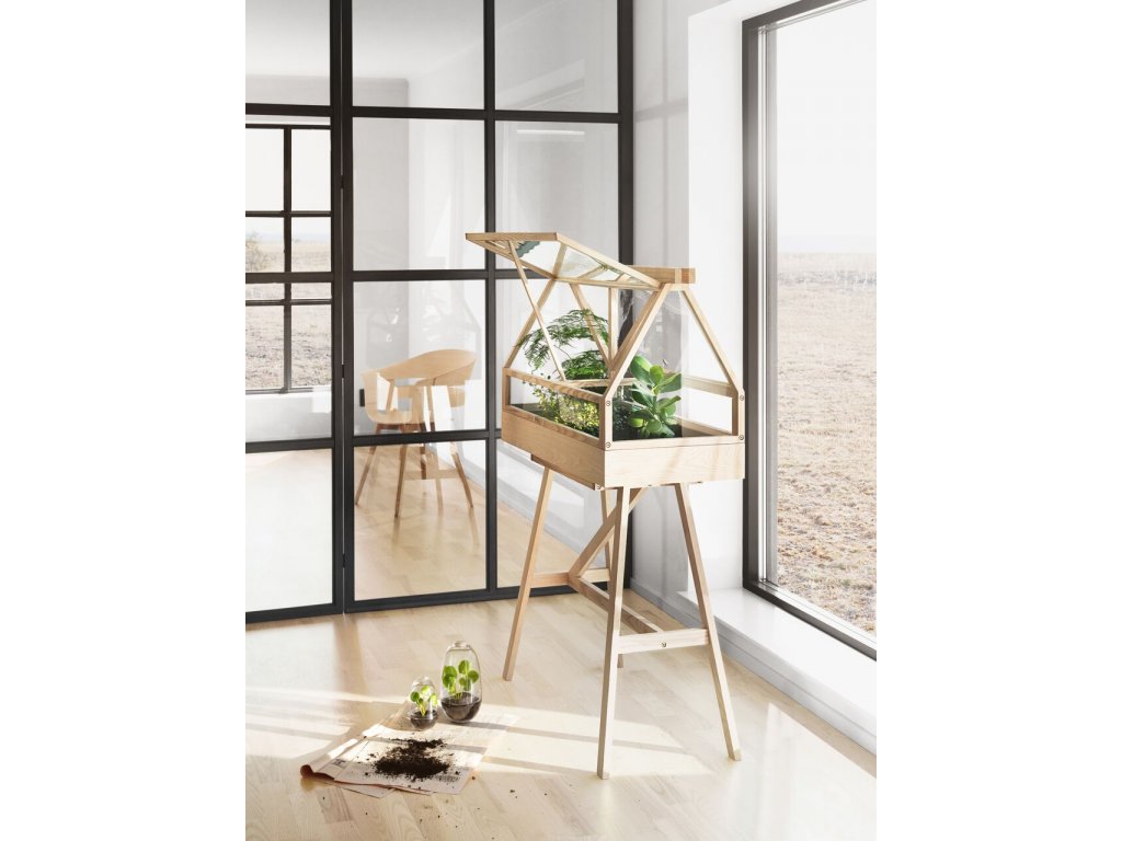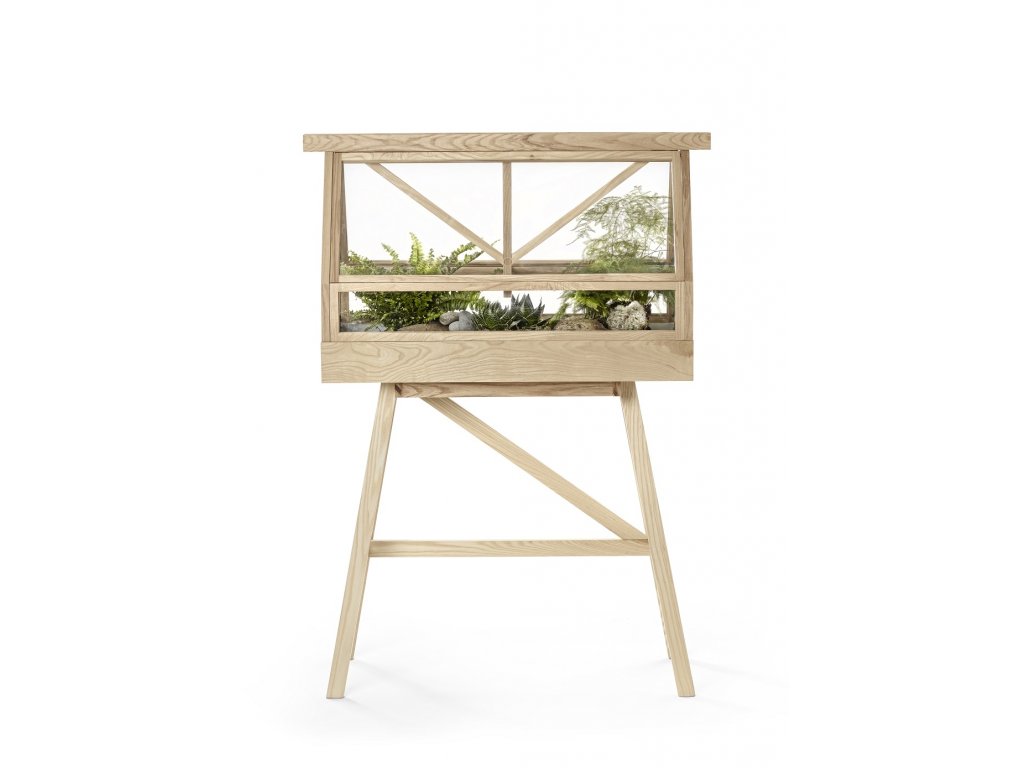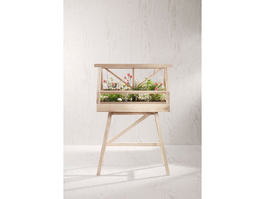 Greenhouse Atelier 2 je vyroben z lakovaného masivního jasanu, výplně tvoří tvrzené sklo a výsuvný truhlík je z pozinkovaného kovu. Dřevěná konstrukce podtrhuje architektonický výraz a činí ze skleníku samostatný solitérní prvek v prostoru. Otevírací okna lze zajistit ve zvednuté poloze při práci s rostlinami.
