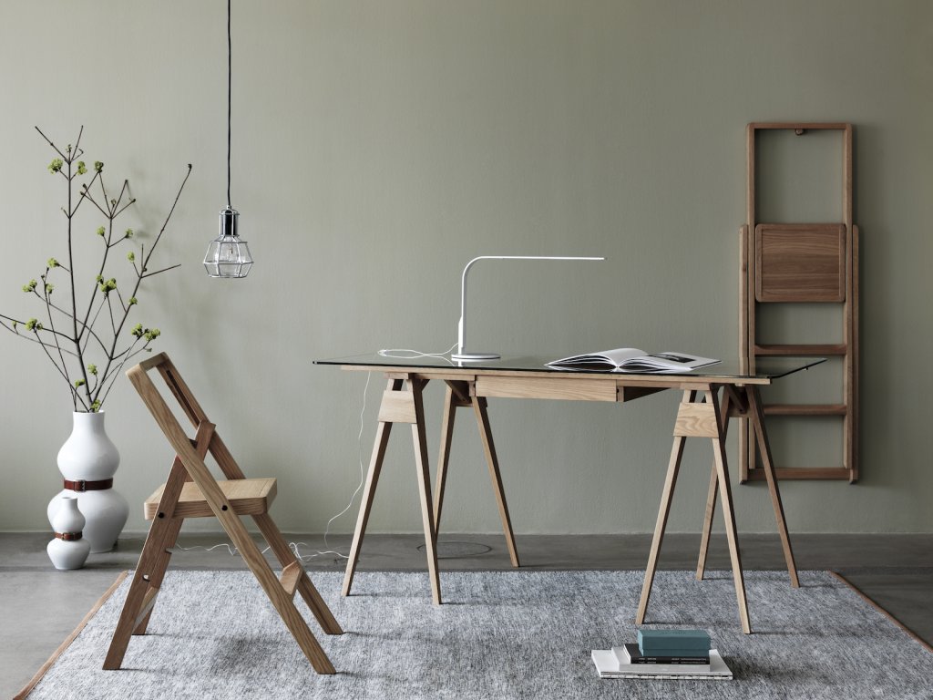 Psací stůl Arco od Chucka Macka povyšuje jednoduchý, ale nepostradatelný pracovní nástroj na designový kousek s uměleckým nádechem. Stůl stojí na dvou kozách, které mu dodávají pružnou lehkost a odkazují na antiku, kde byly architektonické formy navrženy tak, aby zdůraznily měřítko a sílu prostoru.