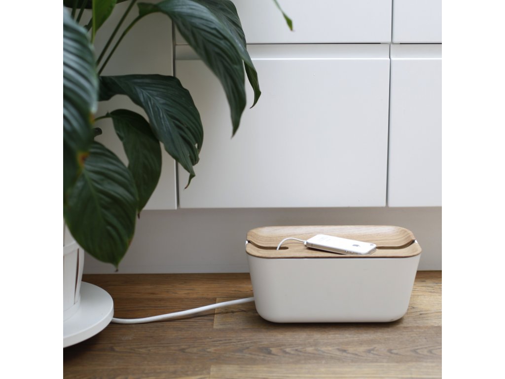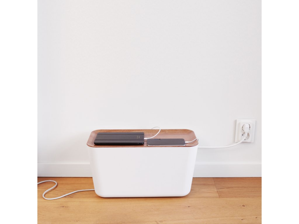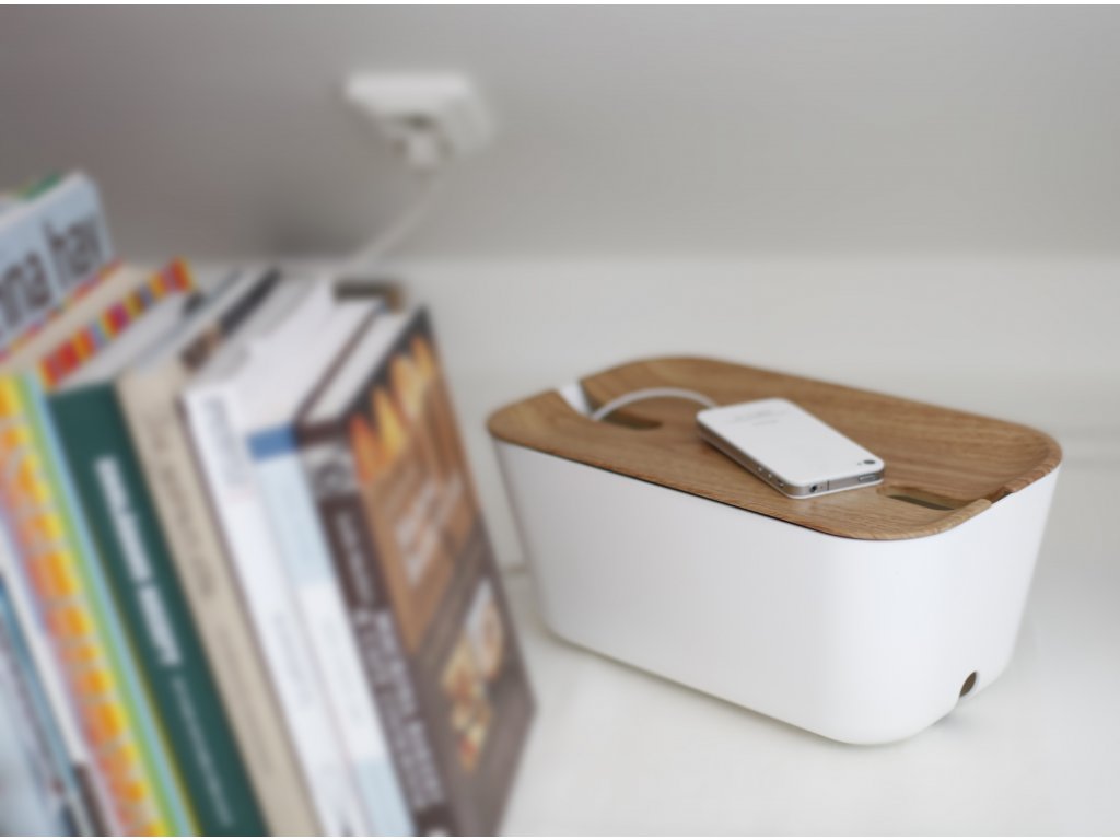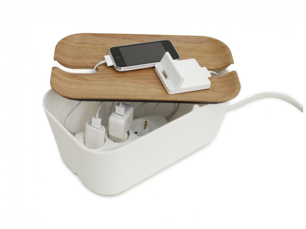 Box na kabely od firmy Bosign elegantně skryje všechny kabely a zásuvky doma i v kanceláři. Vaše příslušenství k elektronice můžete jednoduše uložit na jedno místo k tomu perfektně určené. IPhony, IPady a dalším elektronické zařízení může být bezpečně uloženo na vrchní část boxu s prohlubní, zatímco adaptéry jsou ukryté v boxu. Na výběr máte z několika velikostí a barevných variant.