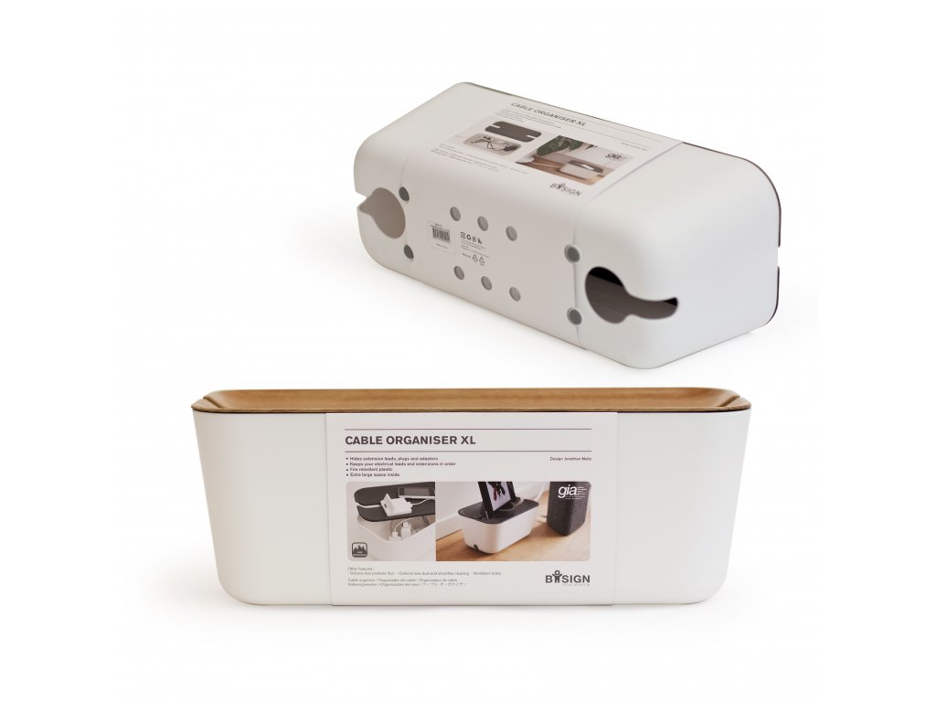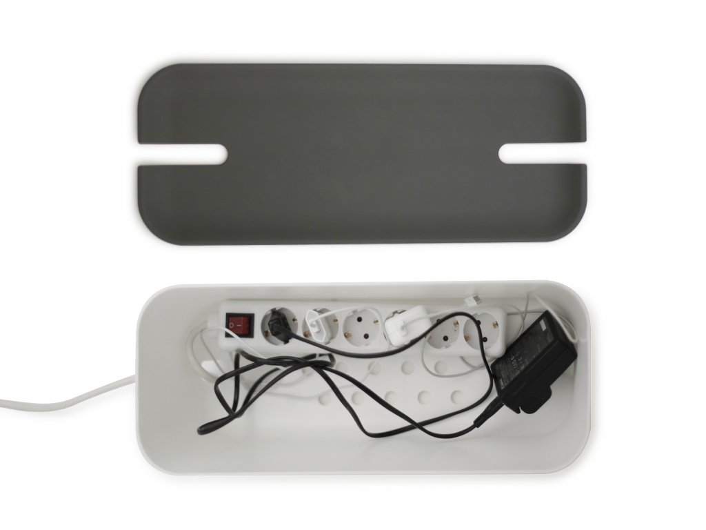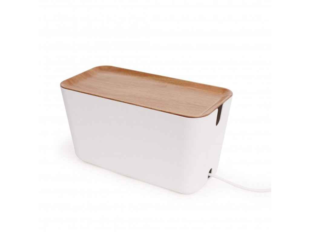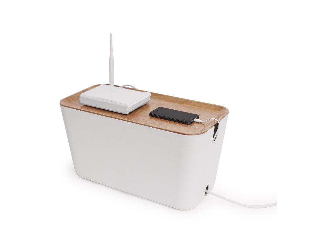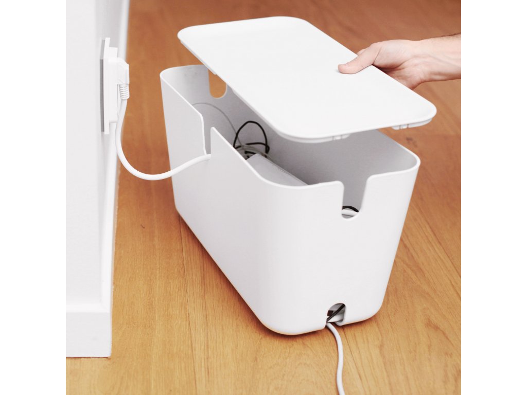 Box na kabely od firmy Bosign elegantně skryje všechny kabely a zásuvky doma i v kanceláři. Vaše příslušenství k elektronice můžete jednoduše uložit na jedno místo k tomu perfektně určené. IPhony, IPady a dalším elektronické zařízení může být bezpečně uloženo na vrchní část boxu s prohlubní, zatímco adaptéry jsou ukryté v boxu. Na výběr máte z několika velikostí a barevných variant.