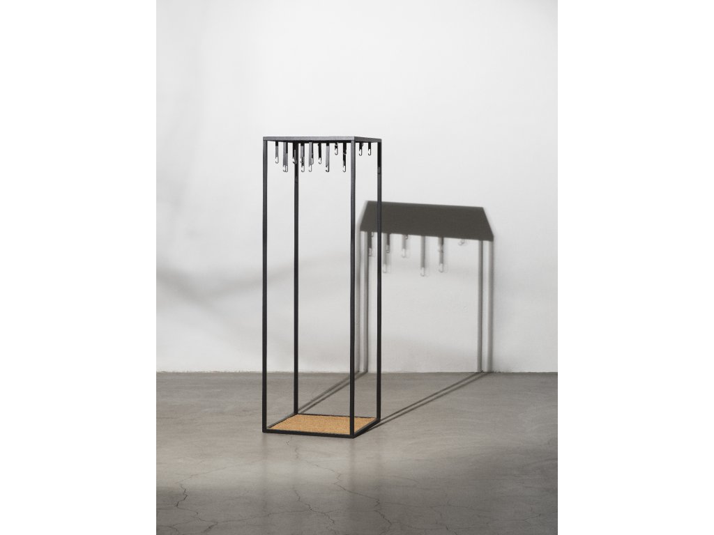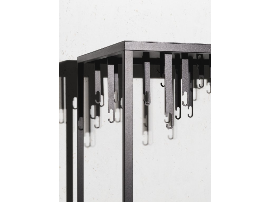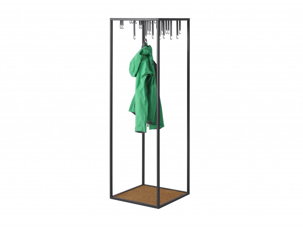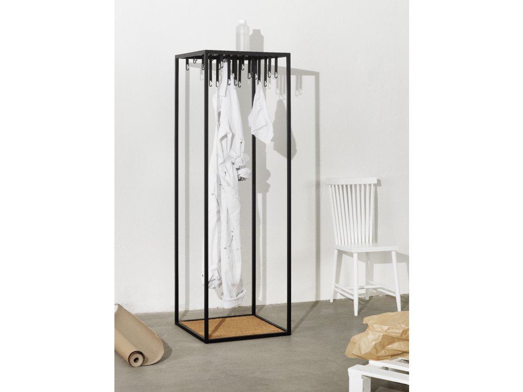 Volně stojící věšák od Alexandera Lervika je graficky precizní rámová konstrukce navržená k tomu, aby oblečení vystavovala – nikoli skrývala. Tento otevřený šatník funguje jako samostatný nábytkový prvek, který lze umístit kamkoli v interiéru. Zároveň umožňuje odvětrání oděvů mezi nošením, čímž může omezit zbytečné praní.