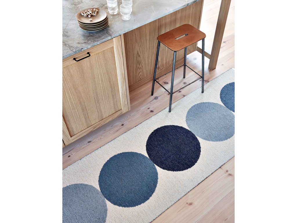 Vinylový koberec pro vnitřní i venkovní použití, vyrobený ve Švédsku. Je vyráběn ze švédského certifikovaného PVC bez ftalátů, tkaný na tradičních stavech pomocí dřevěných člunků. Velmi praktický a snadno se udržuje, lze prát v ruce nebo v pračce při nízké teplotě 30°C, bez odstřeďování.