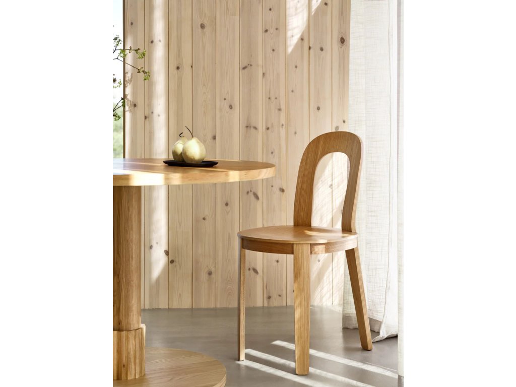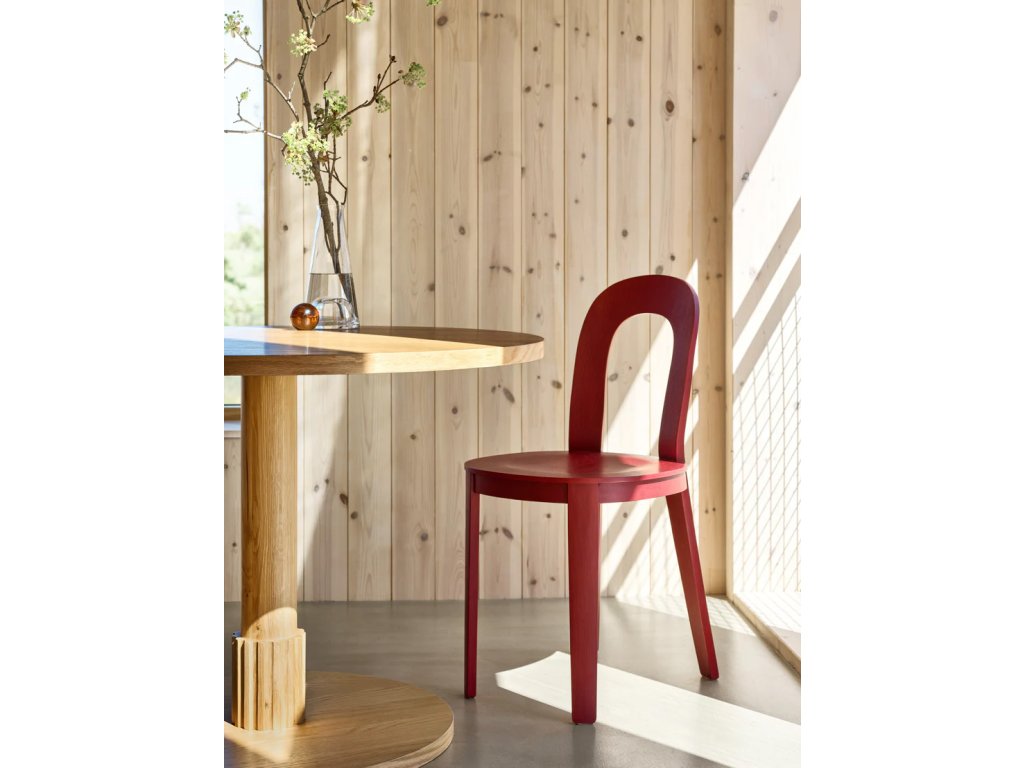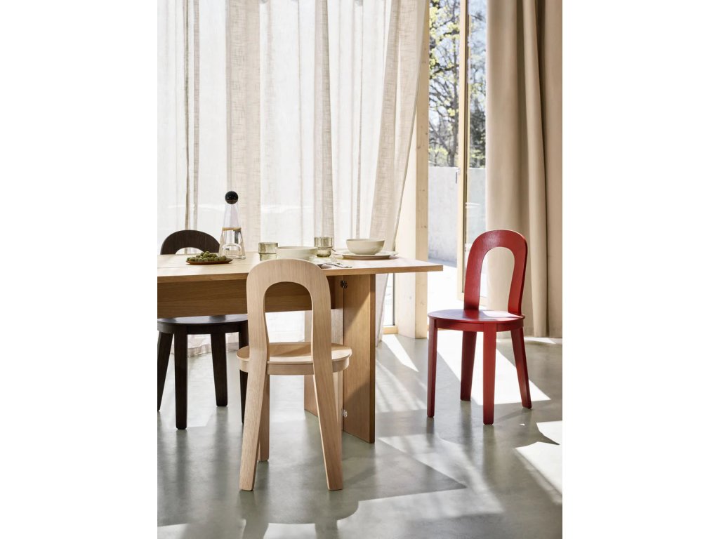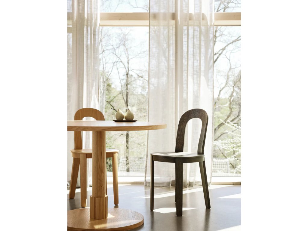 Židle Olivia hledá rovnováhu mezi lehkostí, pevností a pohodlím – je subtilní na pohled, ale příjemná na sezení, jak vysvětluje její autor Tatu Laakso. Je celá vyrobena ze dřeva - tedy z obnovitelných zdrojů. „Otevřená opěrka zad podpírá zádové svaly, nikoli páteř – díky tomu zůstává pohodlná i při dlouhých večeřích,“ doplňuje designér.